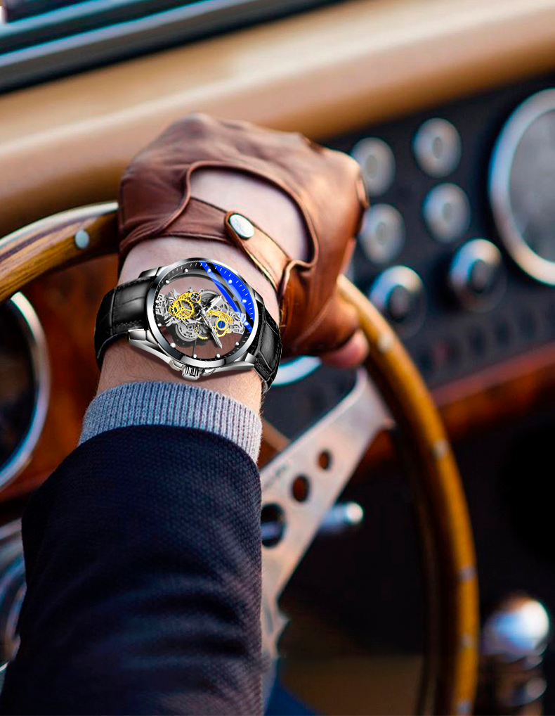 Relógio Mecânico Skeleton - Couro Genuíno, Produto 100% ORIGINAL Alta Qualidade e Precisão, Resistência a Água de 3ATM, Proteção ao lavar as mãos, suor ou chuva.